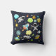 Un oreiller avec un motif mignon et coloré avec toutes sortes d'éléments sur le thème de l'espace. Les images incluent des astronautes flottant autour dans leurs combinaisons spatiales blanches. Des étoiles et des planètes et de petites navettes spatiales, des vaisseaux spatiaux et des satellites cool. Un design amusant et fou.
