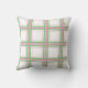 Cet oreiller est prêt à être personnalisé avec le nom et la date de naissance d'un bébé, et a un amusant motif plaid rose, vert et blanc avec un accent voilier rose.