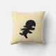 Un mignon dessin animé en ninja habillé en noir court alors qu'il tient une étoile au lancer.