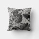 Un oreiller vintage botanique à jetons floraux noir et blanc avec un motif en tissu vintage qui a été numérisé et teint.