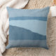 Cet oreiller de lancer présente des bandes abstraites de bleu et de gris, ressemblant à un horizon côtier ou de plage. Parfait ajout à une plage ou une chambre à thème bleue.