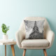 Ce coussin comporte une photographie de l'iconique Tour Eiffel à Paris, France.