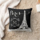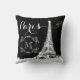 Ce chic coussin parisien noir et blanc présente une image de la Tour Eiffel blanche avec "Paris" écrit dans un script moderne. Un monogramme que vous pouvez personnaliser est encadré par un parchemin blanc de fantaisie.