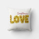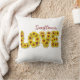 Diffusez de bonnes vibrations avec ce coussin décoratif tournesol jaune "love". Modifiez la couleur de fond pour l'adapter à votre style actuel. Ajoutez ou supprimez le texte pour personnaliser.