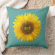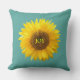 Tournesol jaune moderne sur oreiller turquoise. Texte seulement sur le côté avant. Un grand cadeau pour tous ! On pense que les tournesols apportent de la joie !