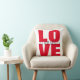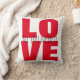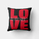 Il s'agit d'un coussin dispose d'une conception graphique avec du texte. Le mot LOVE est en grosses lettres rouges gras. Au milieu, "Tout ce dont vous avez besoin, c'est de l'amour" est en noir. Sur le dos du coussin, le design a un arrière - plan noir et "Tout ce dont vous avez besoin, c'est de l'amour" est en blanc. Vous pouvez customiser les couleurs.