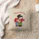 Personnalisez ce coussin de fête avec votre propre légende et/ou couleur de fond. Image nostalgique adorable de deux tout-petits (garçon, fille) étreignant Mme Snow Lady. Voir aussi d'autres coussins, ornements et autres articles coordonnés de cette collection de designs.