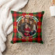 Traditional Personalized Family Photo Plaid Throw Pillow. Merry Christmas and a custom text. Add your photo. Personalize the text any way you wish or delete it. The background features green and red plaid pattern. Great as a Christmas gift or a keepsake pillow for the family.