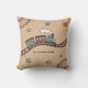 Un coussin avec une illustration d'un train en bois souriant tapoté le long d'une piste sinueuse. L'arrière - plan de la carte est un beige chaud, dégradé, avec des détails subtils comme des engrenages en bois et des étoiles dessinées à la main. Une bonne idée cadeau pour une famille ou un enfant !