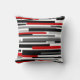 Une conception simple des traits horizontaux de noir, blancs et gris avec un accent rouge. Ce coussin semblera grand dans un décor contemporain ou moderne.