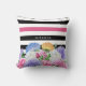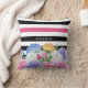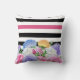 Un carré à la mode rose et noir floral et rayures lance un oreiller décoré d'un tableau coloré de jolies fleurs et de larges rayures horizontales. Vous serez sûr de capter l'attention lorsque vous personnalisez ce design tendance et mignon en ajoutant votre nom.