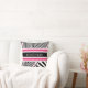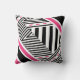 Personnalisez ce coussin de carré géométrique motif à la mode noir et blanc avec des rayures roses chaudes en ajoutant votre nom. Ce design moderne de poutres est sûr de capter le bon genre d'attention.