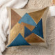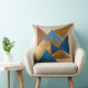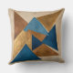 Coussin triangle bleu, or et bronze abstrait