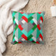 Lancer l'oreiller dans un design moderne du milieu du siècle moderne de triangles stratifiés dans les tons turquoise, gris / gris, rouge tomate, vert jade, accentué de blanc