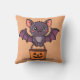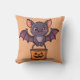 Le collectionneur de bonbons le plus mignon. Ce coussin est parfait pour les petits monstres et les adultes, avec une chauve-souris amicale et un seau citrouille souriant. Un accessoire charmant et amusant pour la saison éffrayante !