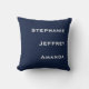 Ce carré simple et minimaliste jette l'oreiller, avec la place pour trois noms, est un cadeau merveilleux pour une nouvelle maison ou une fête de ménage - ou pour vous-même, bien sûr ! Grand cadeau pour les nouveaux parents ou grands-parents. Il est bleu marine et blanc, mais facile à changer de couleurs. Le dos est bleu marine solide. Tous droits réservés © 2024 Alan & Marcia Socolik