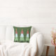 Un coussin en fonds vert avec trois sapins décorés avec des taches pour les nuits en maison de ces Noël.
