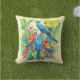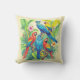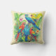 Pillow in vividly colored tropical birds surrounded by lush green foliage and vibrant flowers. The birds display brilliant shades of red, blue, yellow, and green. The scene depicts exotic beauty and rich botanical detail.