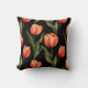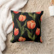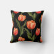 Coussin Tulipes orange audacieuses sur noir - Art floral f