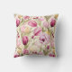 Ce coussin de décoration est présenté avec une belle impression de tulipe rose.