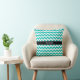 Coussin Turquoise Blanc Chevron ZigZag Nom noir Monogramme