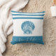 Coussin Turquoise bleu plage vie script seashell moderne c