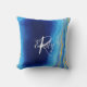 Coussin Turquoise et bleu Agate Marbre Nom Abstrait Monogr