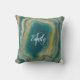 Coussin Turquoise vert Agate marbre Nom Abstrait Monogramm