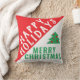 Typographie moderne rouge vert Noël Jour d'Oreiller. Fêtes de Noël coussin avec Joyeuses fêtes et Joyeuse typographie de Noël. Couleurs festives en vert, rouge et blanc. Un arbre de Noël simple. Grand coussin de Noël de Noël pour un sentiment festif de Noël ou un cadeau pour une famille et des amis. Vous pouvez customiser le texte ou l'effacer.
