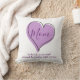 Un cadeau pour maman mignon oreiller jetant le coeur comporte un coeur violet sur un arrière - plan blanc. "Maman" est écrite à l'intérieur avec une belle citation en dessous. Personnalisez le vôtre dès aujourd'hui !