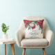 Sur cet élégant oreiller Holiday jeté est une image étonnante d'un bouquet de fleurs de poinsettia rouge et blanche. Le texte stylisé en dessous de l'image est en rouge et vert assorti, et dit "Joyeux Noël et Bonne Année". Tout est placé sur un arrière - plan blanc de neige, et les deux côtés du coussin ont la même image et le même texte.