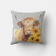 Coussin Vache écossaise Highland avec des tournesols. Modi