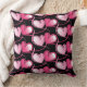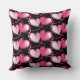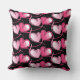 Cet oreiller de lancer est montré en noir avec un joli design d'impression de coeur festif Valentine en rose.