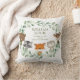 Coussin adorable à thème boisé avec des animaux de forêt sucrés et élégante couronne de verdure botanique