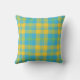 Coussin Vert, Bleu Ciel, Motif Plaid Jaune