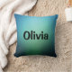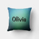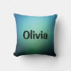 Coussin vert émeraude turquoise clair avec texte que vous pouvez modifier ou supprimer.
