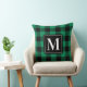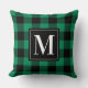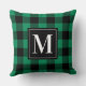 Un oreiller jeté à plaid buffle vert et noir gras avec un monogramme à une seule lettre dans un cadre noir et blanc saisissant. Le vert émeraude vibrant apporte une énergie fraîche et joyeuse à la décoration de Noël et des fêtes. Personnalisez avec votre initiale pour un accent saisonnier exceptionnel ou un cadeau de Noël personnalisé.