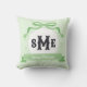 Coussin Vert menthe, motif grec inversé avec noeud papillo