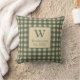 Monogrammez ce coussin de jeté à carreaux plaid vert et beige avec votre initiale et votre nom de famille. Vous pouvez ajouter n'importe quel texte au bas. Fait un excellent cadeau de mariage, cadeau de douche de mariée, ou achetez-les pour votre maison.