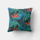Double-sided throw pillow featuring vibrant tropical leaves and orange flowers on a dark background. The design conveys a lively, exotic feel.