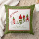 Cette belle coussin est décorée dans des teintes vertes et rouges sur fond blanc et enneigé. L'illustration est un village enneigé naïf avec le message émouvant : "Ayez un joyeux petit Noël." Que vous pouvez changer selon vos souhaits. Il est écrit avec une belle police. Le coussin est personnalisé avec le nom du propriétaire. Le motif vert est un cadre à l'illustration centrale, les deux parties sont comme cousues avec des points rouges, cadeau de noël parfait pour les petits enfants.