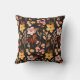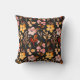 Rose, vin et jaune automne/automne fleuri et verdure sur coussin décorateur noir.