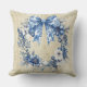 Coussin Vintage Chinoiserie Blue White Wreath Bow Holiday