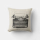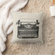 Image vintage de machine à écrire sur la toile de faux. Dans français il y a les mots "que c'est une longue histoire". L'arrière du coussin a la traduction.