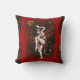 Ce coussin est illustré avec 6ème une danseuse de diable vintage excentrique. L'arrière - plan est rouge avec une lune de crâne gothique et des étoiles.