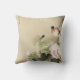 Ce bel oreiller décoratif à jetons présente un imprimé d'aquarelle japonais classique, vintage, avec un oiseau, des fleurs roses et des feuilles verts. Personnalisez facilement le texte avec votre nom.
