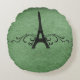 Coussin Vintage rond Grungy mais élégant en vert avec un design tour Eiffel agrémenté de tourbillons et de points chic et d'un arrière - plan texturé en faux papier. Cette coussin à thème parisienne unique offre une touche de fantaisie française ! Facile à customiser, ajoutez simplement le texte personnalisé de votre choix dans le champ de texte fourni. Cliquez sur le bouton "Customiser" pour trouver d'autres options de personnalisation.