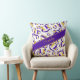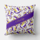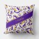 Cette équipe de volleyball cool couleurs lancer l'oreiller pour ses caractéristiques un motif de taille variée stylisé violet, or et blanc volleyballs tournés partout sur un graphique de détail de filet de volleyball - les panneaux violets et or de volleyballs sont mélangés avec un motif floral girly artset - personnalisent son nom dans une police manuscrite sophistiquée sur une bande violette audacieuse, anglée, pleine largeur - Les couleurs des bandes arrière - plans et de noms sont personnalisables - par katz_d_zynes