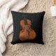 Ce carreau présente toujours une vie classique d'un vieux violon élégant. Cet instrument gracieux est essentiellement une boîte en bois creuse avec les extrémités arrondies, deux trous gracieux de f et un centre étroit. Les quatre ensembles de ficelles s'étendent d'un support de ficelle au fond du corps au-dessus d'un pont augmenté à l'extrémité du cou étroit, ou de la touche où les quatre ficelles sont insérées dans un pegbox et sont tenues là avec des chevilles. Les chevilles sont employées pour accorder le violon. Quand l'arc est dessiné à travers les ficelles sur le corps du violon il produit la musique incroyable et magique ! Les tons bruns et presque oranges d'or magnifiques sont donnés par le tissu noir gracieux de velours. L'image est répétée sur le dos.