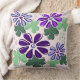 Coussin Vivid vert et violet trèfle et Doodle de fleurs